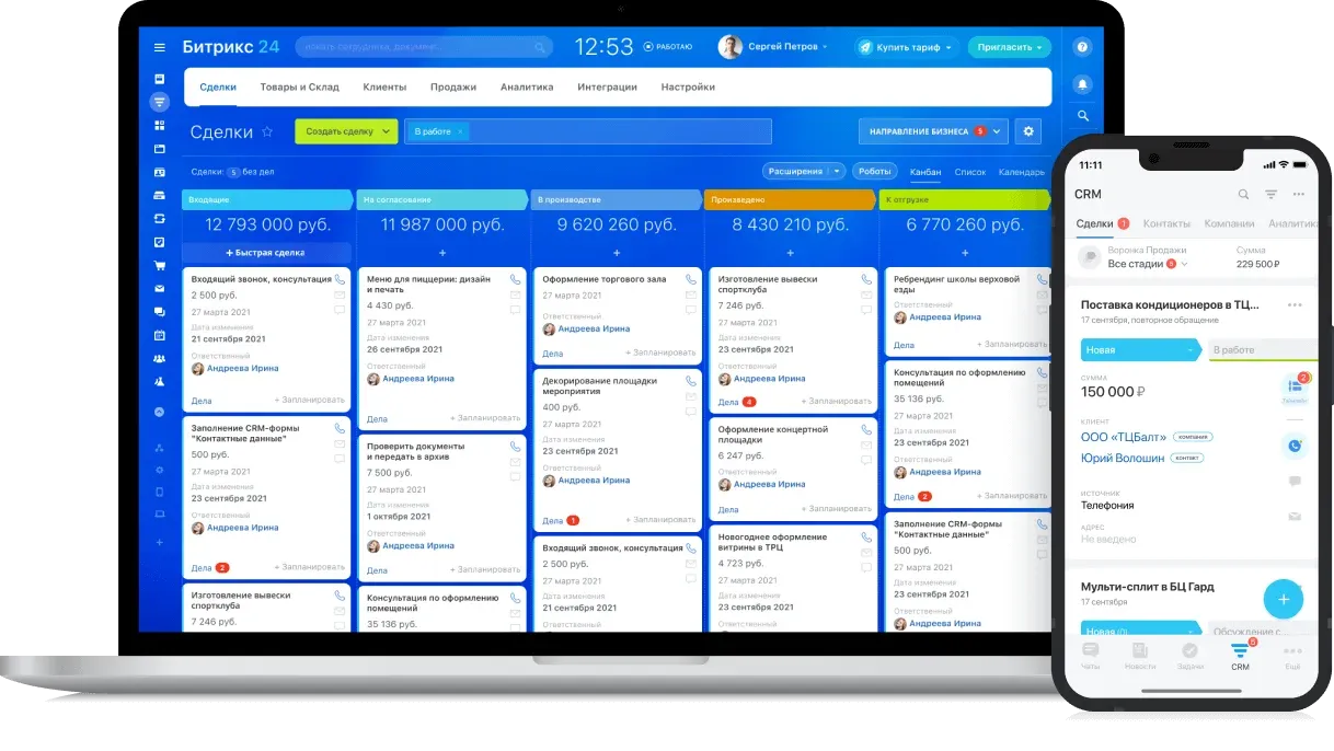 Полный контроль за бизнесом, от задач до отчетности. Управляй командами и сделками с Битрикс24 — мощным и удобным решением.