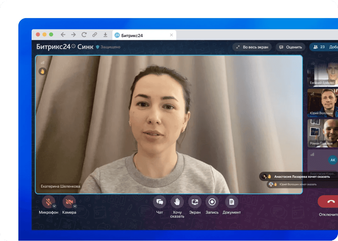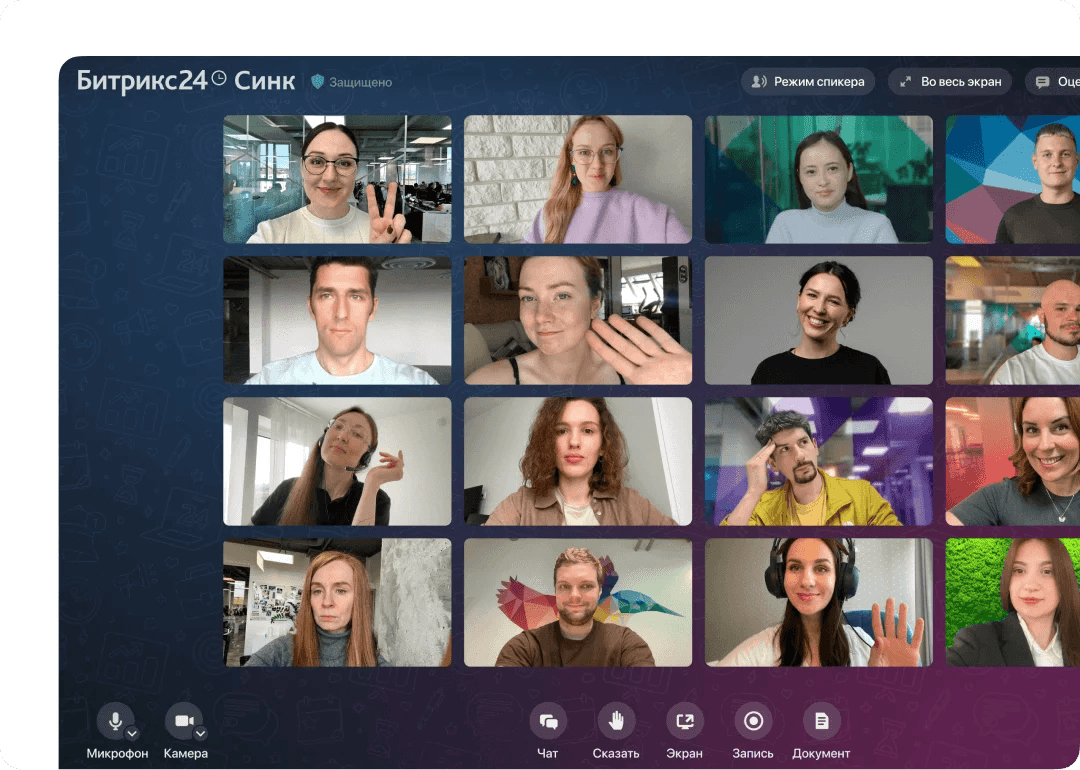 В отличие от других сервисов, в Битрикс24 вы сразу приглашаете коллег на колл и общаетесь без лимита по времени.