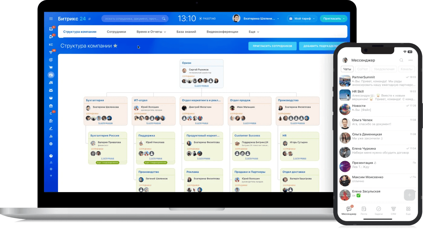 Работайте эффективно и достигайте большего вместе! Все инструменты уже собраны в Битрикс24: CRM, задачи, сайты, новости компании.