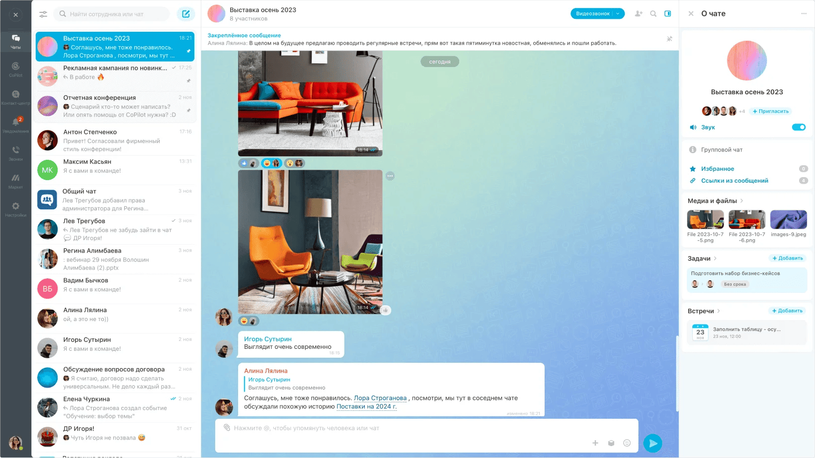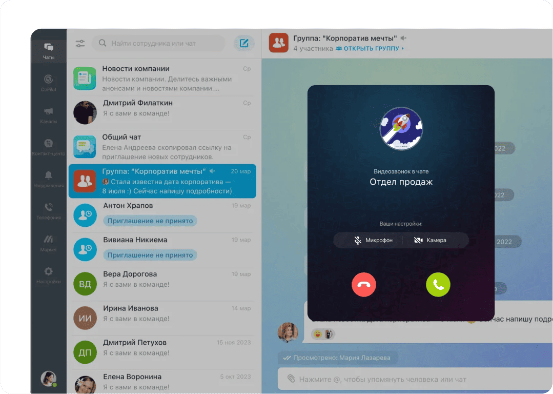 Это мощная платформа для видеозвонков на 100 человек прямо в бизнес-мессенджере