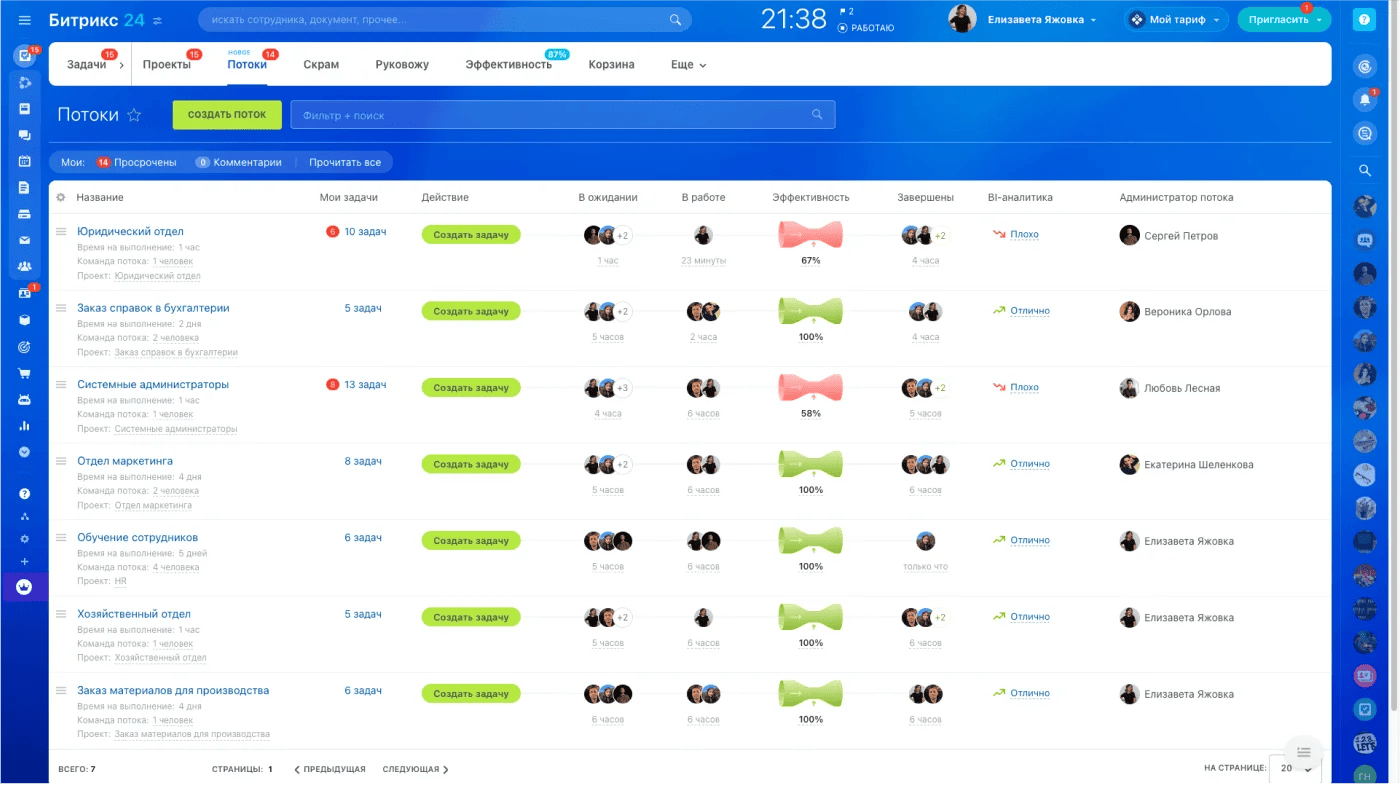 Битрикс24 Потоки делают процессы прозрачными и помогают сотрудникам всех отделов лучше планировать работу.